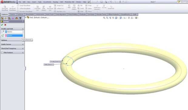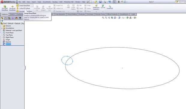Paso 5 barrido el óvalo alrededor del círculo de 100mm (curva de guía)