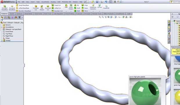 Paso 8 usando las herramientas de la derecha seleccione la bola de color, luego apariencias, entonces plástico u otros materiales, entonces el color o textura prefieres para la visualización.