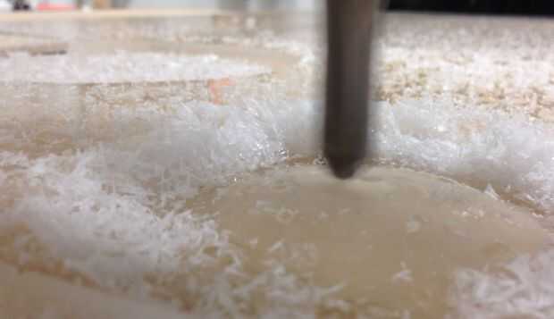 fresado de 3 ejes se realiza con una fresa de bola de una hoja de acrílico gruesa. (1/2" en la imagen)