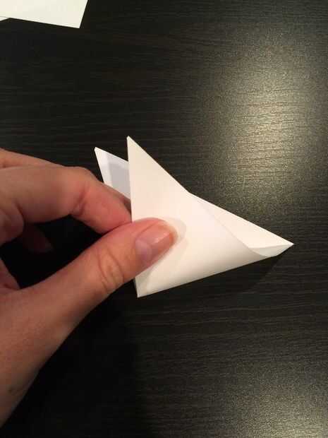2. Doble mitad otra vez, trayendo los dos puntos para crear un triángulo.