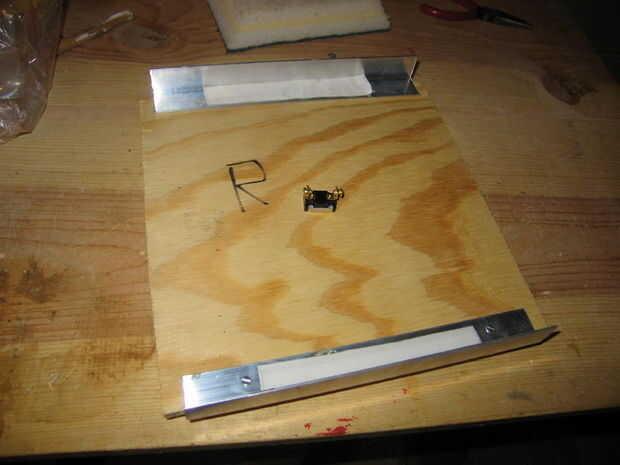 Conecte las tiras de ajuste en la parte superior e inferior de la parte posterior de la base de aluminio. Los bordes sobresalientes (perpendiculares a la Junta) deben ser 10 1/4 pulgada aparte. Esto tiene que ser firmemente espaciados para encajar en las barras de soporte.