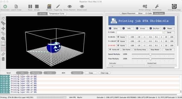 Estoy usando un metal simple filamento naranja y Printrbot, y tardé cerca de 35 minutos para completar la impresión.