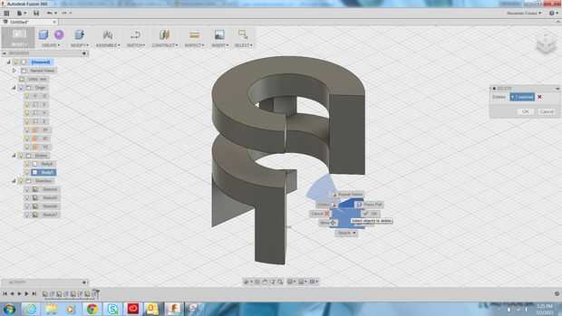 Hay dos maneras que usted puede ir sobre la eliminación de cuerpos flotantes en fusión. Yo voy utilizando el método más simple, que sólo implica el uso de la herramienta "Delete". Si selecciona el cuerpo en el árbol de la característica, puede haga clic derecho sobre el propio cuerpo y, haga clic en "Borrar", que eliminará fácilmente la parte. Podría también usar la herramienta extruir corte y cortar solamente a esa sección de la parte si quería.