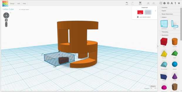 Porque Tinkercad es un poco más básico, el cuerpo principal del cubo de sombra y la pequeña flotando la pieza todavía registro como el mismo cuerpo. Para quitar el segmento pequeño, reajuste del plano de trabajo (arrastrando la herramienta de plano de trabajo a un espacio vacío) y arrastrado y escala una caja para cubrir la sección flotante. Entonces es sólo una cuestión de hacer la caja un agujero y agrupar todos los componentes otra vez.