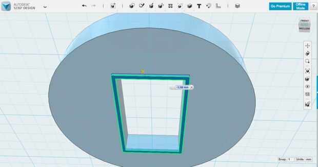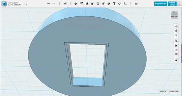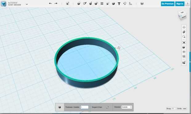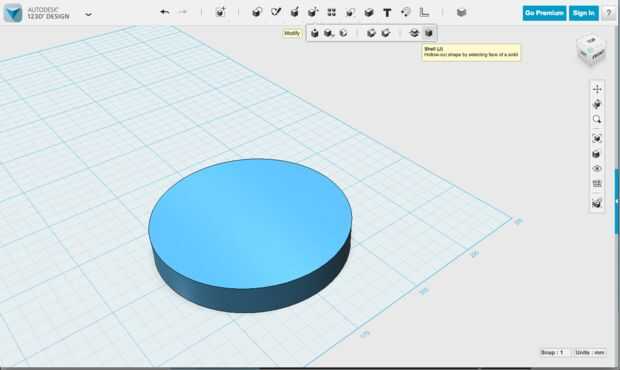Mi cilindro principal tiene el mismo radio como el escudo botón de Internet (32,5 mm) y va desde la parte superior de la base de la chispa apenas sobre la acción de botón en la parte inferior de la pantalla (11 mm). Quiero este difusor para dejar tanta luz como sea posible a través de, usé el modificar -> comando Shell para ahuecar hacia fuera. Un milímetro es un buen espesor para las paredes dejar suficiente luz a través. No se olvide de cambiar la dirección a fuera para que salga de la pared alrededor de su radio de 32,5 mm. Es necesario que todo el espacio interior.