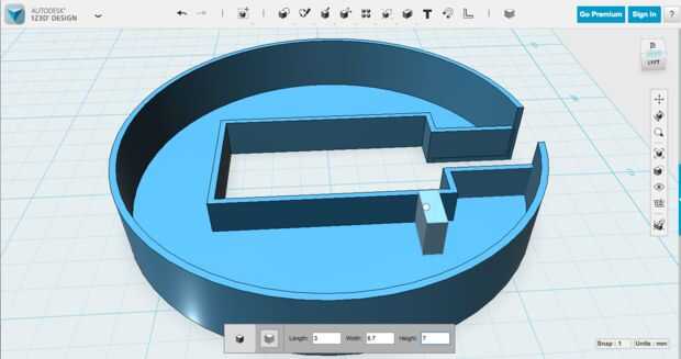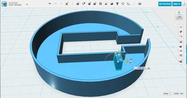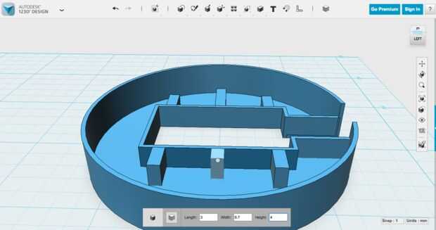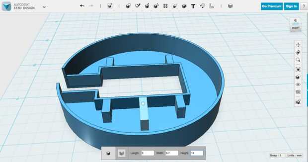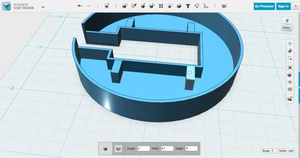 Hice mis soportes de 3mm de ancho, porque 3 es un número bonito y no hay suficiente crédito. Ajustar objetos en su lugar es una de las cosas que tienes que ser consciente de diseño 123D como vas a compilar, porque mientras que usted está creando los objetos es el momento más fácil de hacerlo. Si hace clic en Primitaves -> la caja y luego el ratón sobre una superficie, se crea la nueva forma en que la superficie. Esto se aplica a las superficies laterales también. Así que he creado mis apoyos en el exterior del centro de la caja de la base de la chispa, haciendo que 3mm ancho y 6,7 mm de alto (Nota las dimensiones cambiarán para coincidir con la superficie coloca su caja, técnico que lee 3mm de longitud y 6,7 mm de ancho, mientras que usted está creando). Si haces la misma altura que la caja de la base de la chispa (6.7 mm), puede hacer clic había ' y caer a la cama, donde estarán perfectamente en línea con el resto de esa caja hueca.