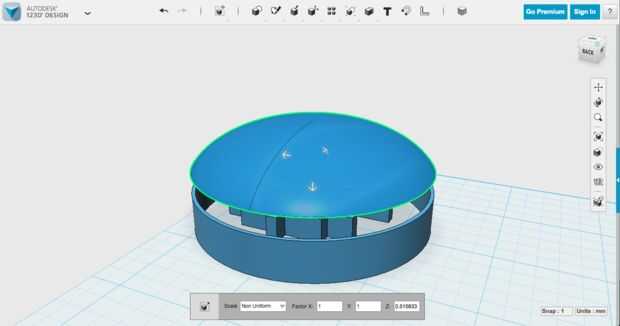 Para una cúpula, tomé el difusor plano y había hecho algunos cambios. Lo primero es quitar la tapa, una tarea bastante sencilla si usas press/pull para mover la parte inferior de la tapa más allá del borde superior. Luego Dale la vuelta por lo que es vertical.
