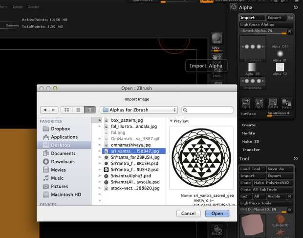 7. usted verá el icono de su arte aparecen en el menú de alfa. ZBrush Lee negro como transparente y blanco como forma. Echa un vistazo al icono y asegúrese de que el blanco y negro es como usted quiere. Si no es así, haga clic en el botón inverso en la esquina inferior derecha del menú.