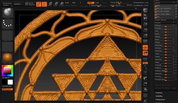 6. para los detalles en los pétalos, puede usar la brocha Inflate como hicimos con los triángulos del Shriyantra. Hay un cierre para arriba de los detalles en las fotos.