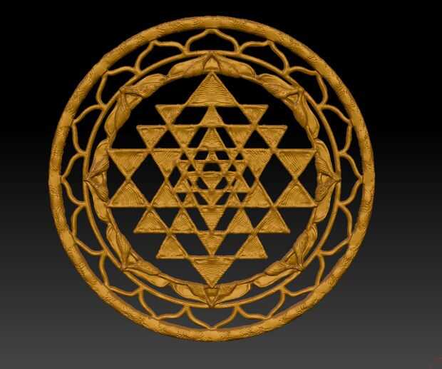 3. ir sobre todos los bordes del Shriyantra con la brocha Inflate y hacerlos un poco más pop.