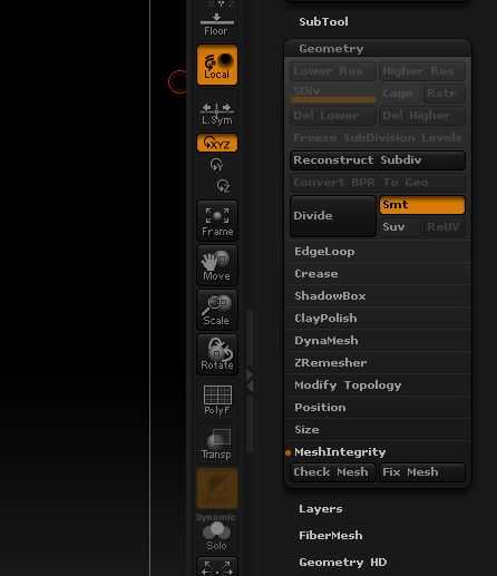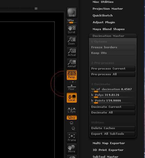 1. en geometría, abra la ficha de integridad del acoplamiento, haga clic en integridad de malla comprobar. ZBrush te dirá todo lo que está mal con su malla. :-O Eliminar bajos niveles de subdivisiones y haga clic en fijar la malla. Esto hará que la impresora muy feliz.