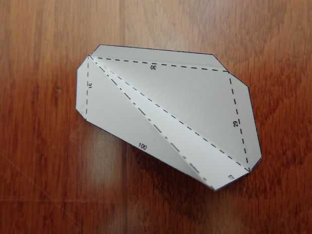 Este es el último paso antes de pegar todas las piezas. En el plegamiento, hay dos tipos: montaña pliegues y dobleces de Valle. Sujetando el papel con el lado impreso hacia usted, dobleces de montaña son pliegues que se mueven el pliegue hacia usted, mientras que pliegues de Valle alejar el pliegue. Desde una vista lateral, los pliegues de montaña crean un pico (una montaña) y el doblez de valle crea un baño (un valle). Las fotos anteriores ponen de relieve esta diferencia.