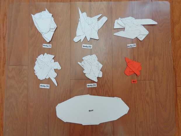Corta las líneas punteadas representan pliegues de Valle. Las líneas discontinuas inconsistente (una rociada larga seguida por un guión corto) representan pliegues de montaña. En este modelo, hay pliegues de valle más que pliegues de montaña. Al doblar, asegúrese de que usted doble directamente en la línea, siguiendo las líneas anotadas realizados en el último paso. Doble página por página, asegurándose de que sus piezas mantengan organizadas.