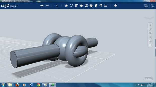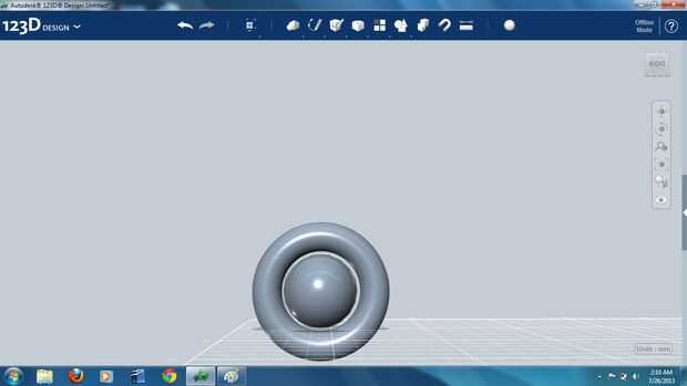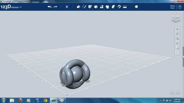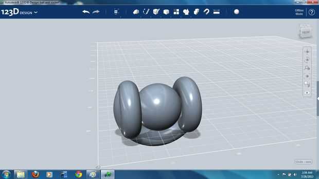 En este punto una esfera idéntica fue generada y combinada con la estructura del cilindro toroidal. Se trata de la pieza terminada, y la esfera original puede ser eliminada.