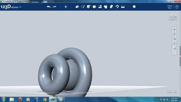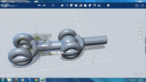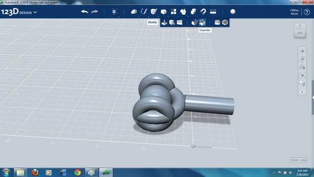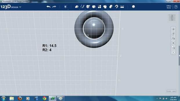 La estructura toroidal fue girada hacia un lado, y un cilindro fue generado y colocado en la cara el toroide mayor. El extremo del cilindro fue "chaflán"-ed para hacer el empalme liso-mirar un poco más y combinado con la estructura del toroide (foto 11).