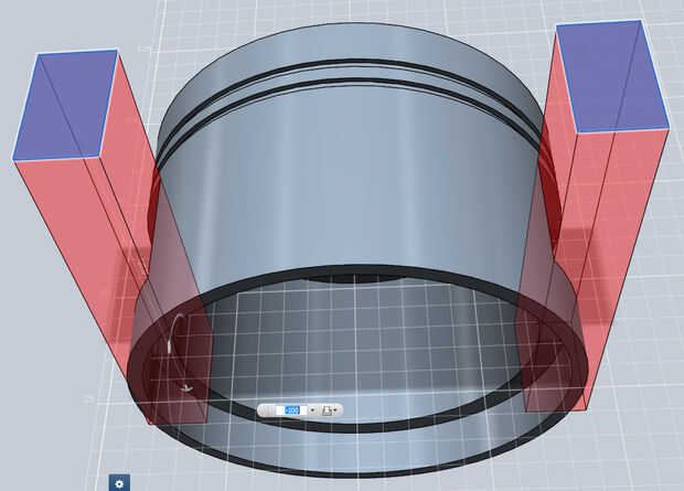 Mostrar el sólido otra vez y subir los 2 rectángulos por alrededor de 60 mm. Después selecciona de nuevo y sacar (con la opción de corte) a 100 mm.