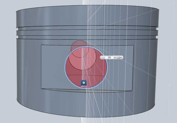 Añadir un círculo (diámetro: 22mm, r: 11) en el lado del pistón yourr. Debe trabar medio de ella. Luego lo saca con la opción de corte a cerca de 80. Luego seleccione de nuevo saca otra vez pero sólido nuevo y seleccione extrusión para 76 mm. Ahora tienes el piston y el perno para él.