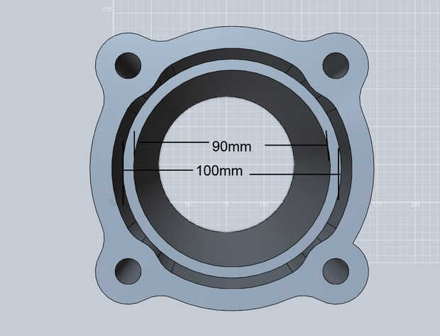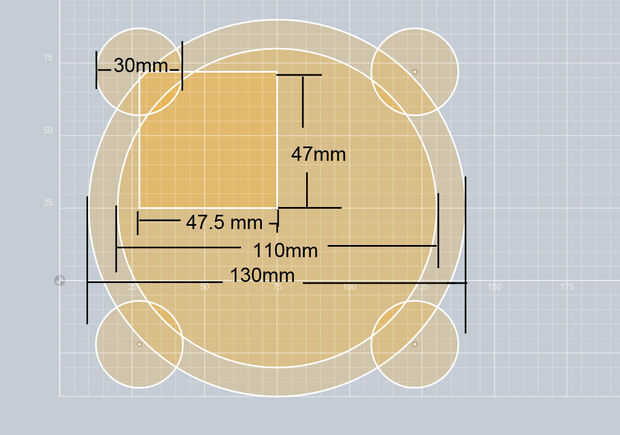 Añadir 2 círculos interiores uno con diámetro de 90 (r: 45) y con el diámetro de 100mm (r: 50). Sacar el uno mayor de 130mm y para sacar la uno también interna con la opción cortar.