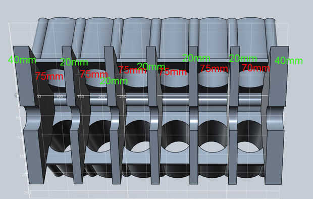 El sólido entero (en realidad 2) de copia y lo pega 6 veces al lado del otro (distancia de 95 m m).