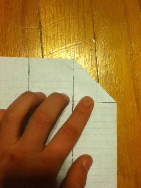 Paso 5: Dobla la esquina superior derecha del papel y la carne del triángulo con el pliegue