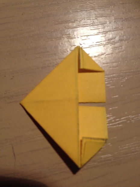 Paso 8: Doblar una de las partes de abajo hacia arriba y sobre el triángulo.