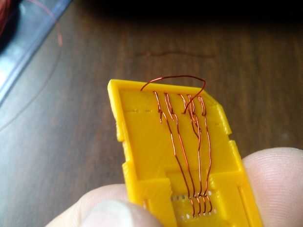 Usé alambre de cobre esmaltado 0.2mm para hacer los contactos en el adaptador. En las fotos puedes ver mi técnica a agregado los cables. Conecte los cables según esta imagen: