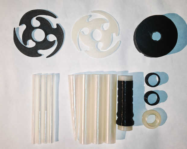8. todo 3D piezas impresas. Los archivos están disponibles para su descarga gratuita aquí: http://www.thingiverse.com/thing:67433
