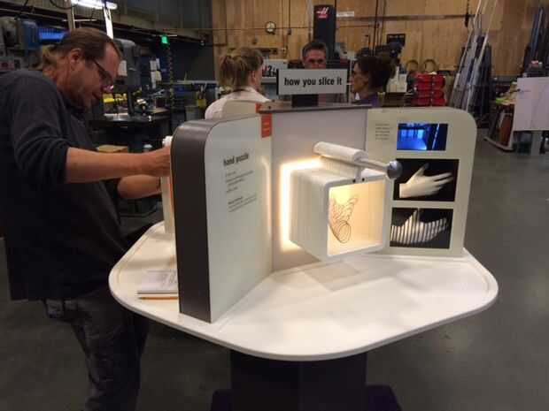La idea era dar a los visitantes un sentido de cómo objetos 3D son solo un montón de líneas 2D - que es cómo una impresoras 3D funcionan, establecen capa por capa de material hasta conseguir una cosa.