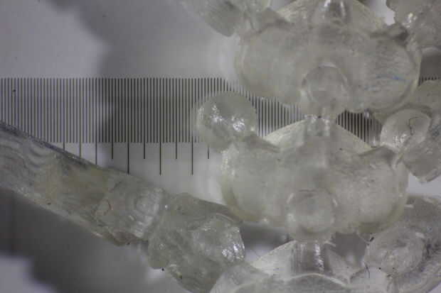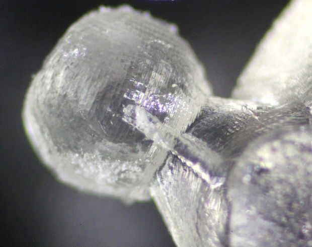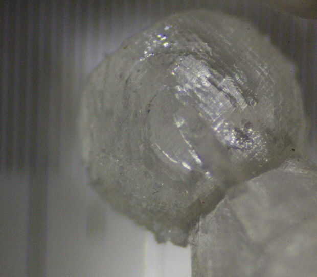 Aquí hay algunas imágenes en primer plano de la bola 2 mm y juntas de enchufe y la geometría como se ve desde dentro de Tinkerplay. En una de las imágenes, una escala graduada con 100 um líneas es visible detrás de la bola.