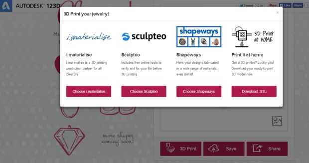 Pulse el botón de "impresión 3D" donde se le dará una selección de opciones de una empresa para imprimir su formulario de encanto, o la opción de "Descargar .stl." Seleccione la opción "Descargar .stl".