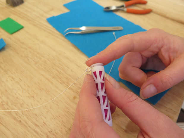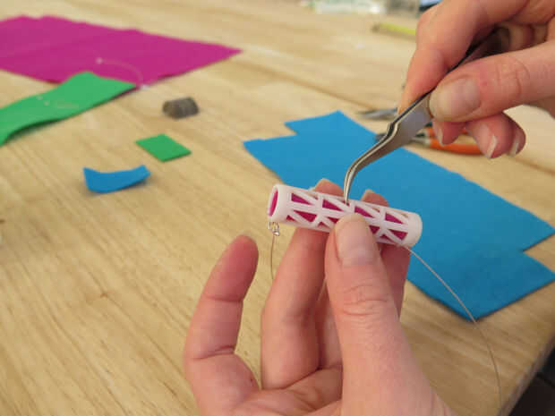 Se enrolle en un tubo y materia en el extremo abierto de la pieza impresa 3D. Utilice unas pinzas para tirar del tubo hacia abajo en el grano y colocar el fieltro por lo que parece suave y la costura es imperceptible. Que tenga que meter en él un poco para conseguirlo buscando realmente ordenado.