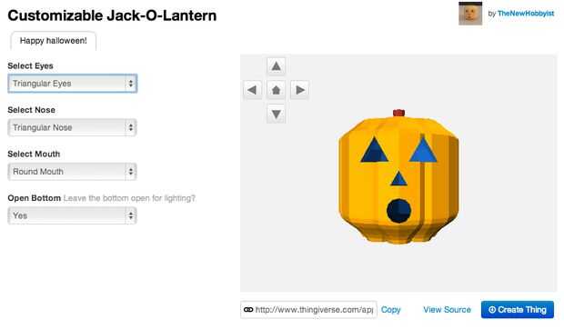 El terminado "personalizable Jack-O-linterna" se puede encontrar aquí: http://www.thingiverse.com/thing:162641