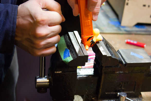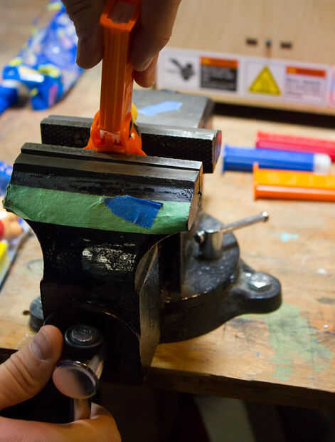 - Lugar dijo Candy Dispenser en el tornillo de banco.