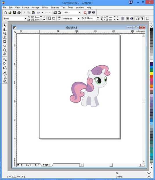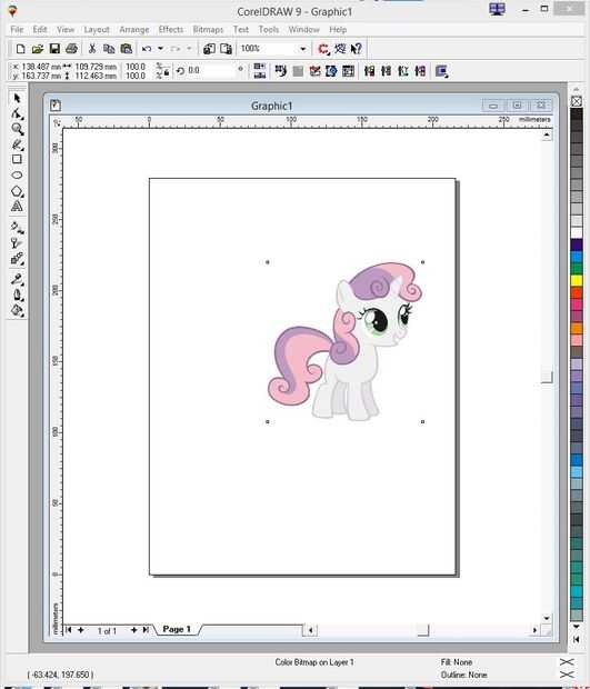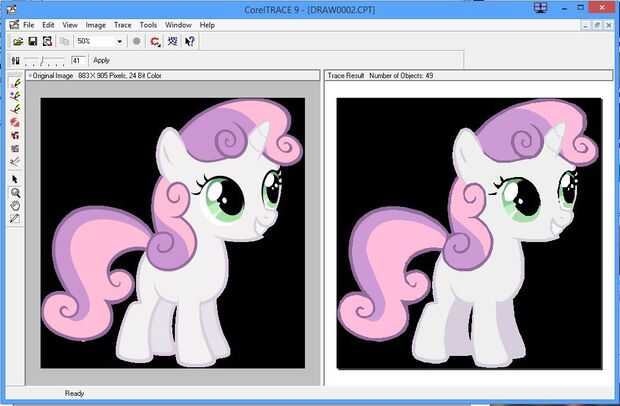 Para poder utilizar el software 3D es mejor que un dibujo de línea del vector como un archivo de entrada en lugar de un jpg plana como esa manera que usted puede elegir elementos específicos para trabajar con. Para convertir la imagen primero importados el Pony jpg en Corel Draw, Corel tiene la opción de seguimiento que va a convertir un jpg en un vector.