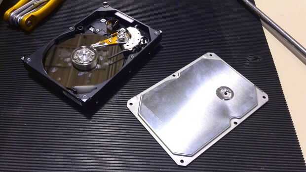 Desmontar la carcasa de disco duro hasta que se puede acceder al motor del disco duro.