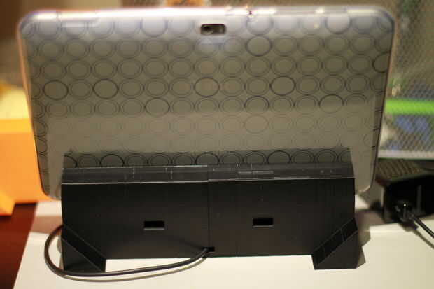 Cada muelle tiene un adaptador de túnel del centro de canal y cable para el cable de alimentación/datos de 30 pin de bloqueo. He incluido 2 clavijas únicas de 40mm por lo que usted puede fácilmente deslizar la aparte de la adición y el retiro del cable. La unidad tiene su ficha en un ángulo de 20 grados perfecto para uso en escritorio o junto a la cama. Ampliado la postura con las cuñas traseras así que usted puede estar a seguro que no habrá ningún vuelco incluso si eres un basher pantalla hardcore. Hay también doble delantera y altavoces traseros puertos así que usted puede mega atasco incluso cuando acoplado con el 8.9.