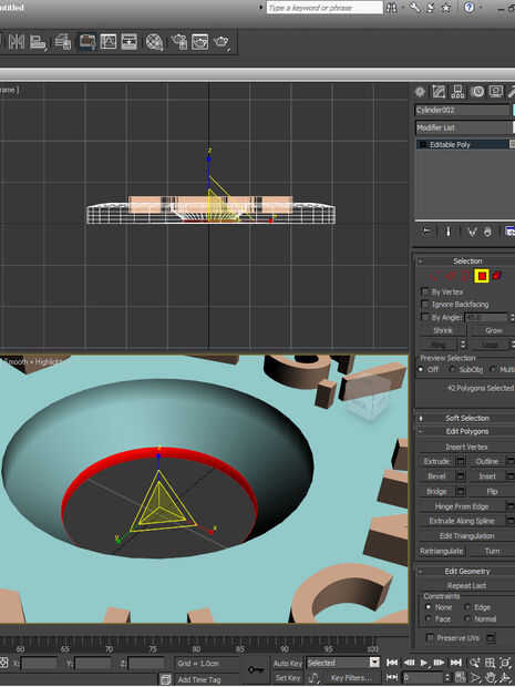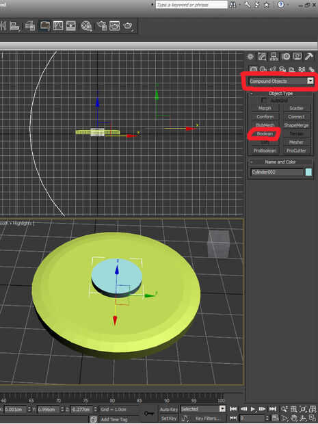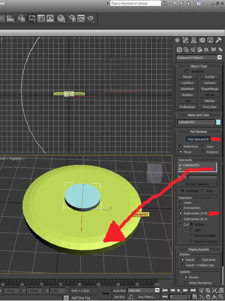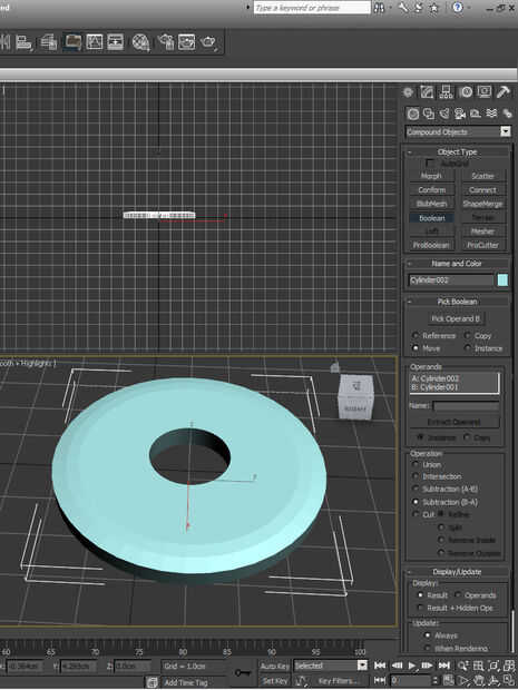 Tapones de auricular tienen un tornillo para sujetar en su lugar. Hacer un corte a otro cilindro más largo que la tapa y 1 cm de ancho. Luego coloque lo sobresale a ambos lados de la ningún. Luego centrar. A continuación, seleccione el "tornillo" y vaya a compuesto de objetos--> booleano en el menú desplegable. Seleccione "restar A-b-A" luego "seleccionar operando B" y haga clic en la tapa. Entonces (lo hice fuera de orden) Seleccione la tapa y convertir en una malla editable y la parte inferior del orificio del tornillo (selecciona caras todo el camino alrededor) y los de escala menor. Esto le dará el tornillo algo para descansar en el.