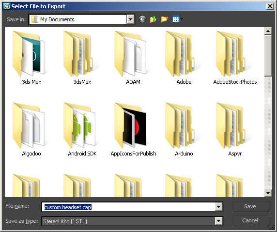Exporte el archivo como un .stl (o lo que sea estás 3d utiliza la impresora). Haga clic en el icono Max y la exportación y cambiar el tipo de archivo a stereolitho .stl y guárdelo. Ahora todo lo que necesitas es una impresora 3D o tarjeta de crédito, shapeways puede utilizarse como un servicio en línea para imprimir eres nuevo tapón de auricular personalizado y enviar a usted.  Gracias por leerme (si te ha gustado por favor votar para este Ible en el concurso 3D desighn, cuz un shopbot sería increíble).