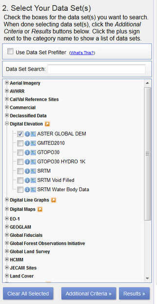 Ampliar la línea de "Elevación Digital" y haga clic en el cuadro de "AsterGlobalDEM".