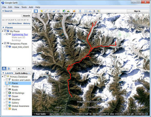 Google Earth mostrará entonces su camino y tal vez algunos waypoints.