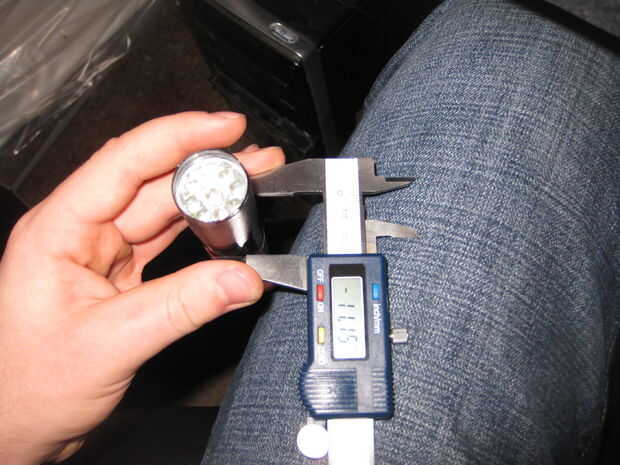 Medir el arma y linterna. Registrar estas mediciones en un pedazo de papel o en el ordenador. O puede saltar al siguiente paso y medida de las piezas como son dibujo, depende de cómo desea hacerlo.  Asegúrese de que el micrómetro se establece en mm y pone a cero.