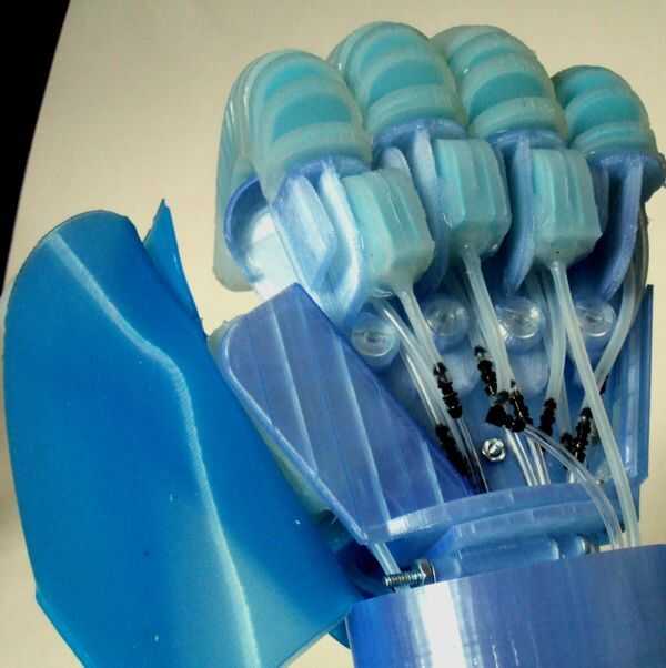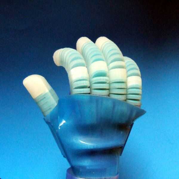 Las almohadillas de piel fueron emitidas en formas y más adelante estaban pegadas a las PLA Palma placa y pulgar músculos usando Oogoo. Para obtener buena adherencia de una capa delgada de silicón puro sellador debe primero poner en el PLA donde van los pads. Deja secar durante la noche y luego usar Oogoo para pegar las almohadillas. Oogoo por sí mismo no se adhieren muy fuertemente al PLA.