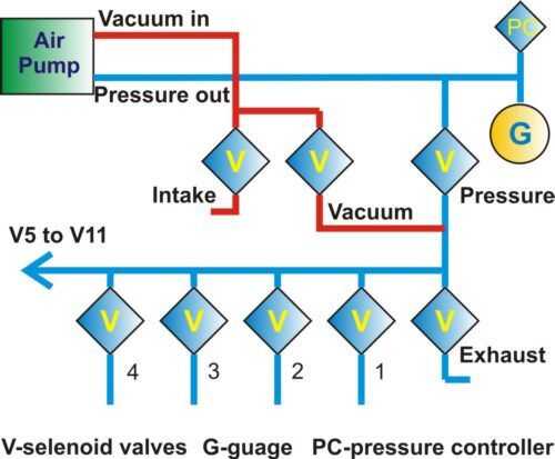 El músculo neumático regulador consiste en 13 válvulas de solenoide y un compresor de aire de 12 voltios. Permite el control de los 11 músculos. Puede ser presurizados a 9 psi o un vacío puede ser aplicado.