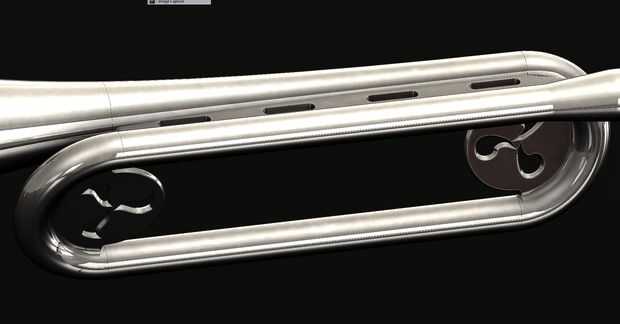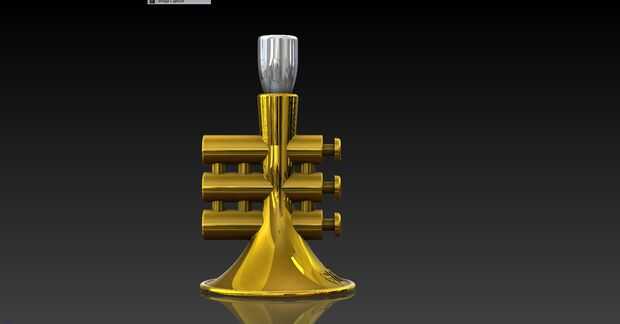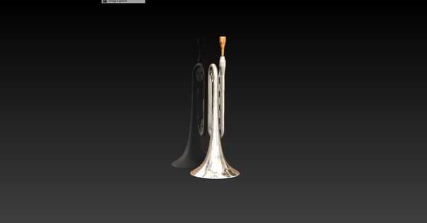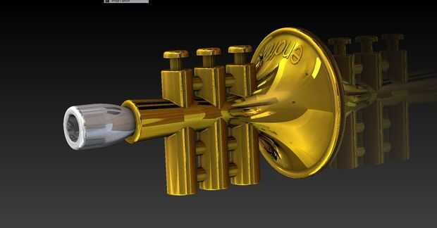 Entonces al final decidí a pegarse a las dimensiones de un instrumento conocido, buen sonido. Como sonido de Selmer de mi vieja es muy buena, que era apto para el trabajo, tomé como mi maestro trompeta y trató de hacer coincidir sus dimensiones internas con las dimensiones internas de mi trompeta para imprimir. El grueso de plástico debe ser mayor que espesor de latón para obtener una estructura suficientemente fuerte así que las dimensiones exteriores del instrumento se hacen un poco más grandes que los Selmer. Esto dio lugar a un aspecto más moderno, robusto trompeta.