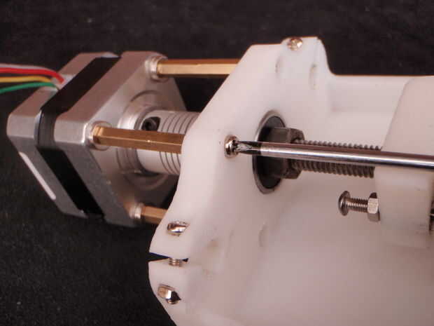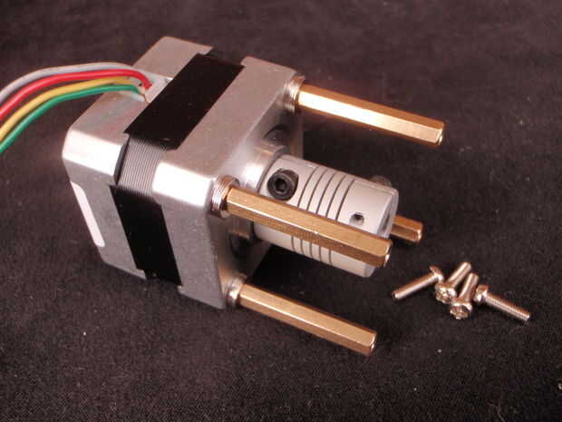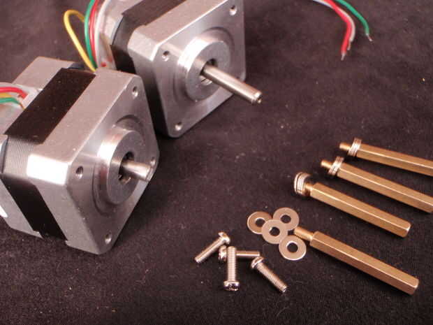 - Se necesita X4 arandelas de 30 mm separadores X4 10 mm tornillos M3 y X12 M3. Los separadores que obtuve de componentes electrónicos esenciales tienen una rosca en un extremo. Si tus separadores no tienen este hilo tienes que cortar las cabezas de algunos tornillos M3 y atorníllelos en el motor paso a paso.