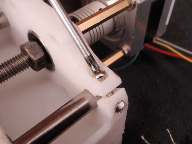 - Girar el tornillo un par de veces y a continuación, apriete los dos tornillos a través de la diapositiva de la herramienta.