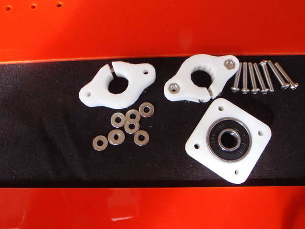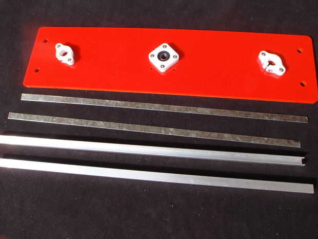 - Cada plato requiere X8 tornillos M3x15, X8 arandelas M3, X2 12 mm Varilla titulares X2 400 mm largo 10x10x1.5 U canal de aluminio, X2 .8mmx8mmx400mm chapa espacios y X1 soporte del cojinete.