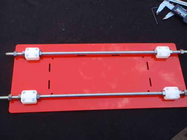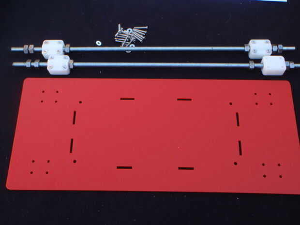 - Cada placa lateral requiere X16 M3x20 pernos, X16 arandelas M3 X 4 sostenedores de barra de 8 mm roscado, X2 M8 430 mm largo tirante, X12 tuercas M8
