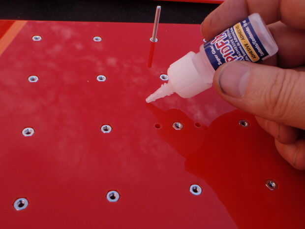 - Ahora la placa superior se puede caer en la posición y 4 que tuercas de más usan para fijar las placas de tres juntos mientras el pegamento seca