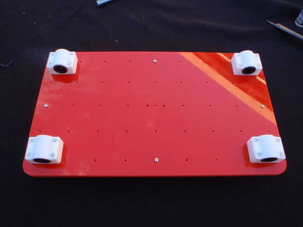 - Una vez seco el 4 rodamientos lineales pueden ser equipados con pernos 30mm